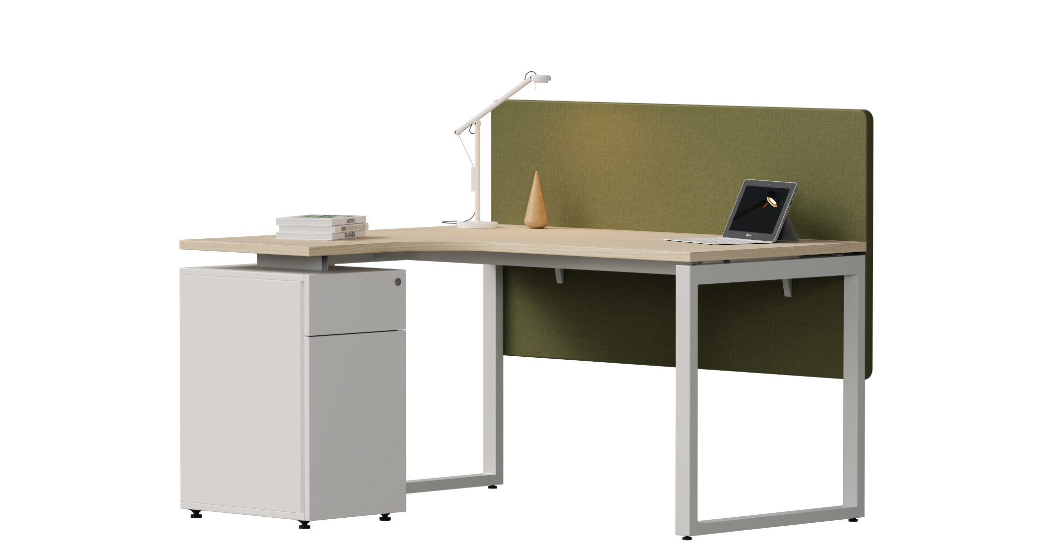 Bàn góc L có tủ là giải pháp nội thất tối ưu cho không gian làm việc hiện đại, kết hợp đồng thời ba yếu tố: công năng, thẩm mỹ và tiết kiệm diện tích. Thiết kế chữ L mở rộng không gian bề mặt làm việc, thuận tiện cho việc bố trí nhiều thiết bị như laptop, màn hình, tài liệu… giúp nâng cao hiệu suất làm việc. Phần tủ liền kề tích hợp ngăn kéo và khoang chứa, hỗ trợ lưu trữ hồ sơ, vật dụng cá nhân ngay trong tầm tay, mang đến sự gọn gàng, ngăn nắp cho góc làm việc. Đồng thời, việc kết hợp tủ vào hệ bàn còn giúp giảm số lượng khung chân, tạo cảm giác thông thoáng hơn cho không gian chung. Với thiết kế liền mạch và chắc chắn, bàn góc L có tủ không chỉ đáp ứng nhu cầu sử dụng đa dạng mà còn tăng tính chuyên nghiệp và hoàn thiện cho văn phòng.