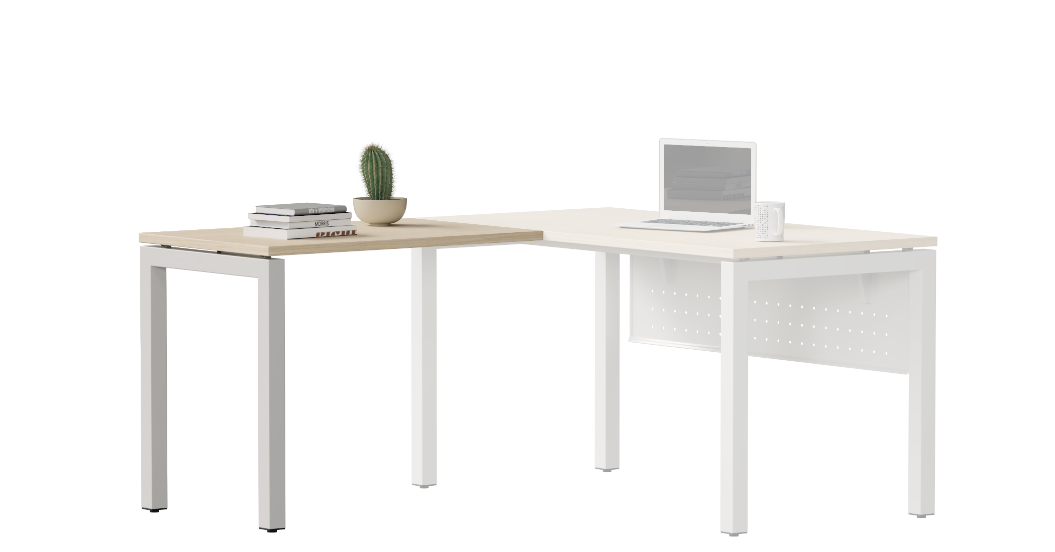 Bàn nối được thiết kế để kết hợp linh hoạt với bàn làm việc, tạo thành bố cục bàn góc L, giúp mở rộng không gian làm việc một cách linh động, tối ưu diện tích mà vẫn đảm bảo sự liền mạch và thẩm mỹ cho tổng thể không gian văn phòng.