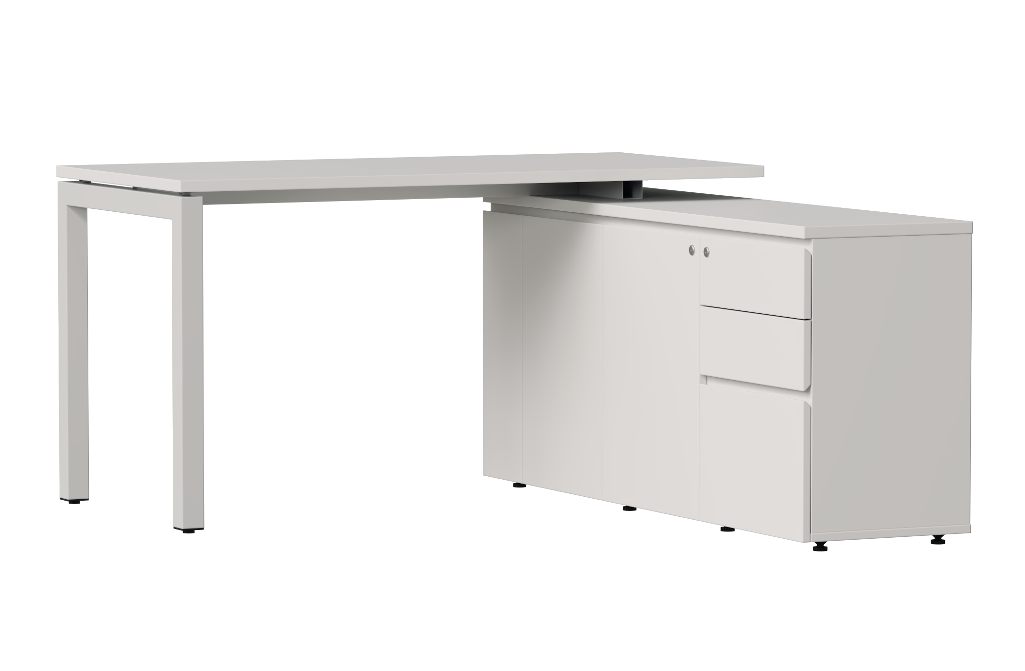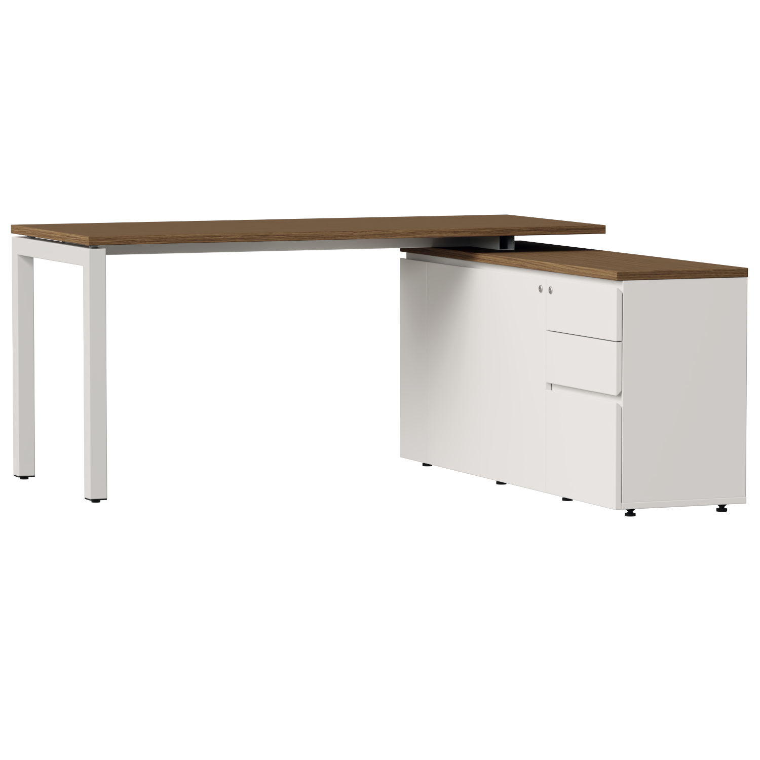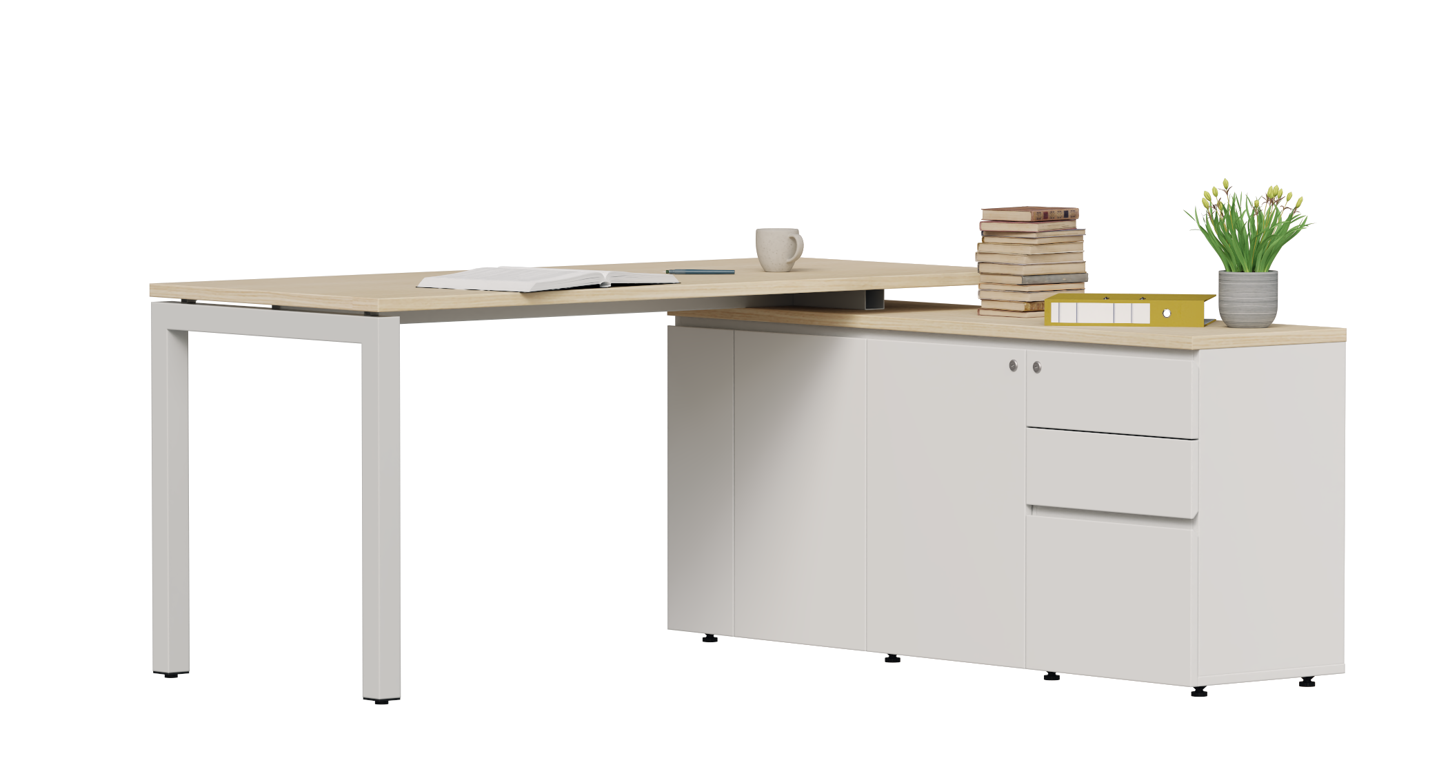 Tủ phụ thiết kế với ba ngăn kéo và hai cánh mở, mang đến giải pháp lưu trữ tối ưu cho văn phòng hiện đại. Các ngăn kéo được bố trí khoa học, phù hợp để sắp xếp văn phòng phẩm, tài liệu thường dùng, trong khi khoang cánh mở rộng rãi giúp cất trữ hồ sơ, vật dụng cá nhân.