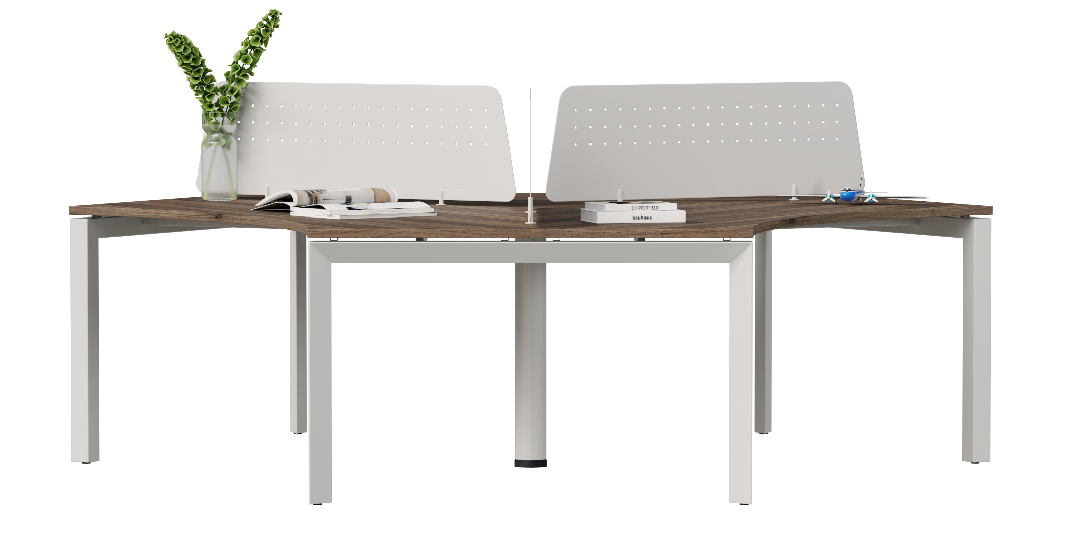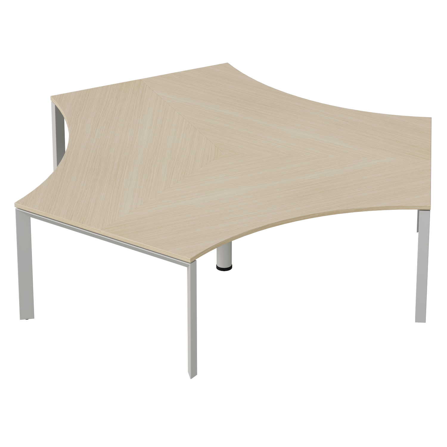 Bàn cụm 3 TALENT mang thiết kế mặt boomerang độc đáo, tạo nên không gian làm việc vừa tách biệt vừa kết nối — nơi mỗi cá nhân có khoảng riêng để tập trung, nhưng vẫn dễ dàng trao đổi và cộng tác cùng đồng đội.